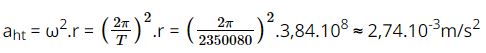 \(\left ( \frac{2\pi }{3600} \right ) ^{2} . 0,08\) ≈ 2,44.10-7m/s2