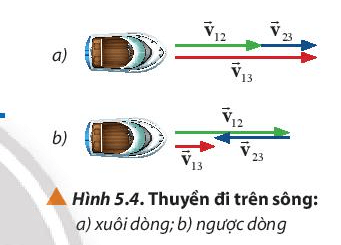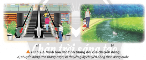 b) Thuyền giấy (hình 5.2b) đối với nước và đối với người quan sát đứng yên trên mặt đất.