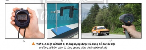 Quan sát Hình 6.3, tìm hiểu và trình bày phương pháp đo tốc độ trung bình và tốc độ tức thời dựa vào những thiết bị trên. Đánh giá ưu và nhược điểm của mỗi phương pháp đo.