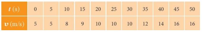 Xét một vận động viên chạy xe đạp trên một đoạn đường thẳng. Vận tốc của vận động viên này tại mỗi thời điểm được ghi lại trong bảng dưới đây.
