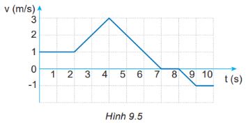 Đồ thị vận tốc – thời gian ở Hình 9.5 mô tả chuyển động của một chú chó con đang chạy trong ngõ thẳng và hẹp.
