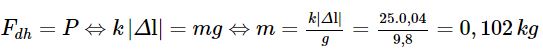 Một lò xo có độ cứng 25 N/m. Đặt lò xo thẳng đứng. Cố định đầu dưới của lò xo. Đầu trên của lò xo gắn với vật có khối lượng xác định. Lò xo bị nén 4,0 cm. Tìm khối lượng của vật. Lấy g = 9,8 m/s2.
