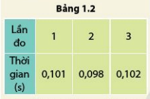 Từ số liệu ở bảng 1.2, tính thời gian trung bình và sai số tuyệt đối trung bình của phép đo