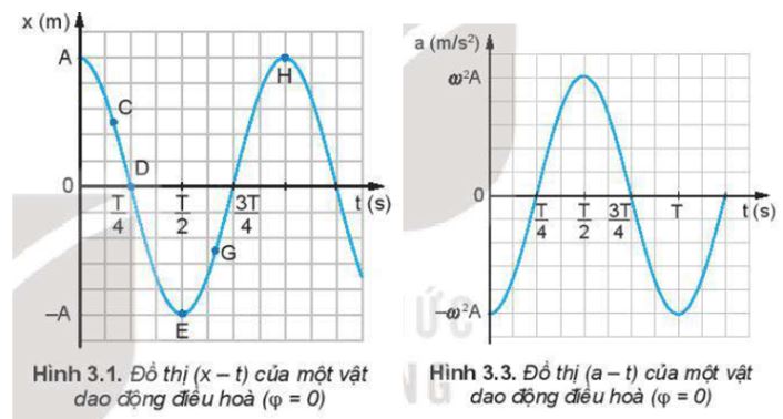 So sánh đồ thị Hình 3.3 và Hình 3.1 ta có nhận xét gì về pha của li độ và gia tốc của một dao động.