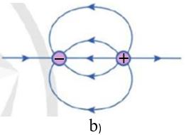 Ở hình b – điện tích bên trái là điện tích âm, điện tích bên phải là điện tích dương.