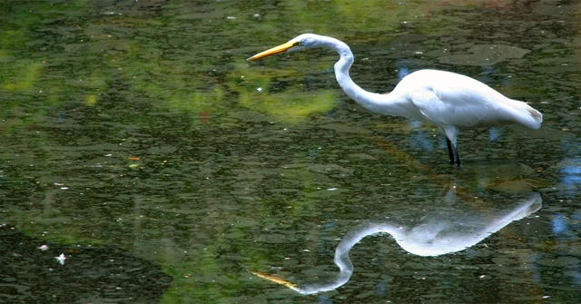 - Vì không quen nhìn bóng tối, cò đậu vào một cành mềm nên bị ngã xuống ao.