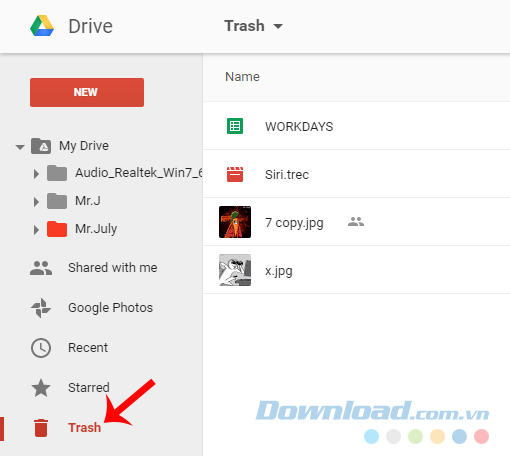 File đã được xóa bỏ sẽ biến mất khỏi giao diện hiện tại của Google Drive.