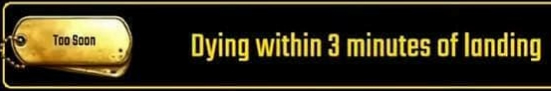 Điều này có thể mang lại cho bạn những món đồ giá trị và vũ khí lợi hại, nhưng mặt khác cũng sẽ phải chiến đấu với rất nhiều người khác, nghĩa là bạn có thể bị hạ ngay khi chưa kịp nhặt được đồ gì. Và với những người chơi bị "kill" khi cuộc chơi diễn ra chưa đầy 3 phút, họ sẽ nhận được huy hiệu Too Soon này.