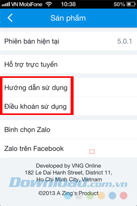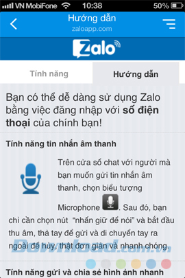 Trong phần Cài đặt, lần đầu tiên Zalo bổ sung "Hướng dẫn sử dụng" chi tiết cho sản phẩm của mình, tuy không quá khó để có thể sử dụng, tuy nhiên, đây cũng là tín hiệu nữa cho thấy việc Zalo đang thực sự nghiêm túc trong việc phát triển, chuyển hướng sang các thị trường khác ngoài Việt Nam.