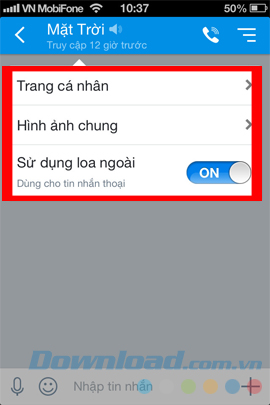 Với những phiên bản cũ trước đây, tại giao diện trò chuyện, chỉ cần chạm vào tên người đó là có thể vào được trang chủ của họ, tuy nhiên, nhờ việc Zalo đã cải tiến, giờ đây, thao tác đó sẽ làm hiện ra một cửa sổ nhỏ bên dưới với vài lựa chọn để bạn sử dụng cùng người đang nói chuyện.