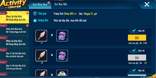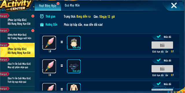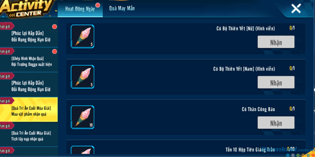 Cũng ở bảng bên trái, các bạn ấn chọn những mục sau để đổi quà (2 mục tên giống nhau nhé):