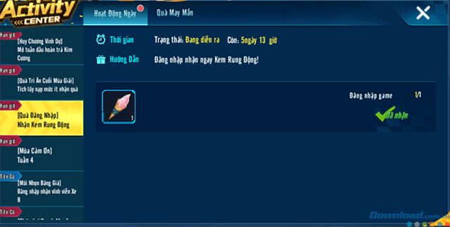 Tìm hiểu thêm » Hỗ trợ qua ZaloTháng 12 tới, Zingspeed Mobile sẽ tròn một năm ra mắt, đi kèm với đó là những sự kiện vô cùng hấp dẫn. Mở đầu cho chuỗi sự kiện này là event Đổi kem rung động. Download.vn sẽ hướng dẫn các bạn tham gia sự kiện này nhé!